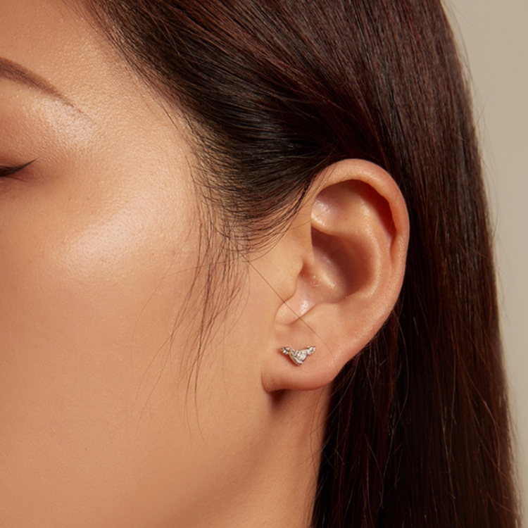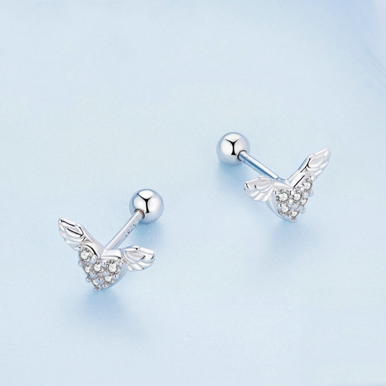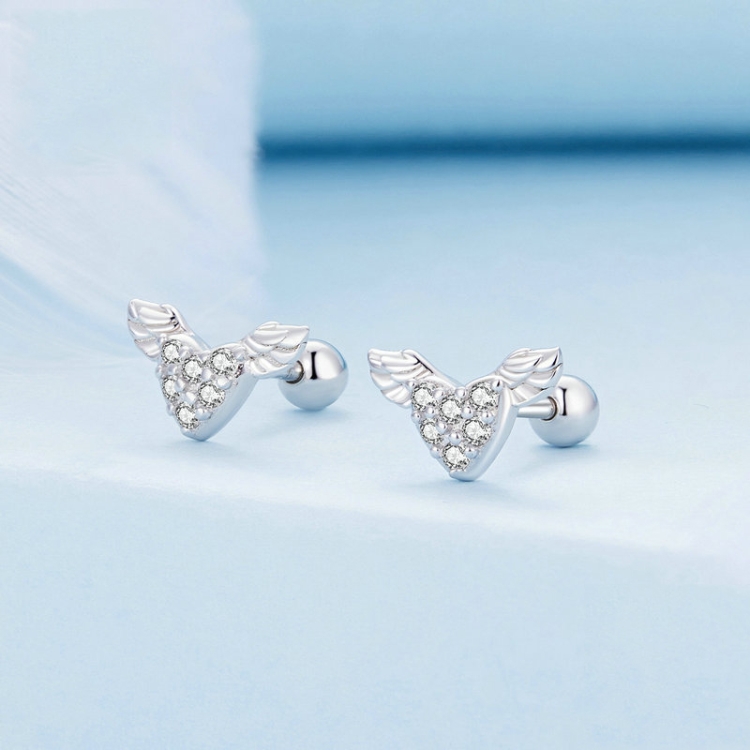 Sterling Silver S925 Love Wings White Gold Plated Zirconia Earrings