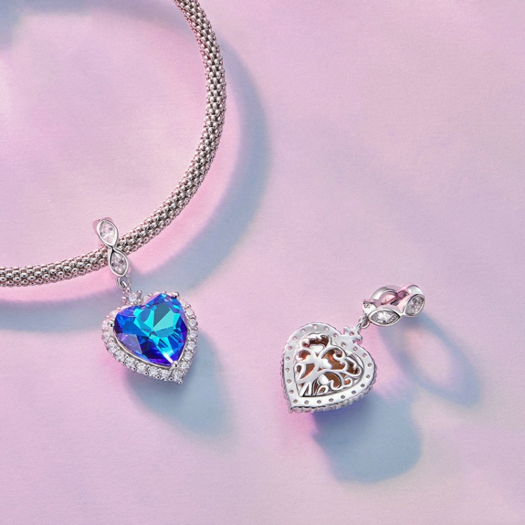 Sterling Silver S925 Ocean Heart Zircon Plated Platinum Bracelet Bead