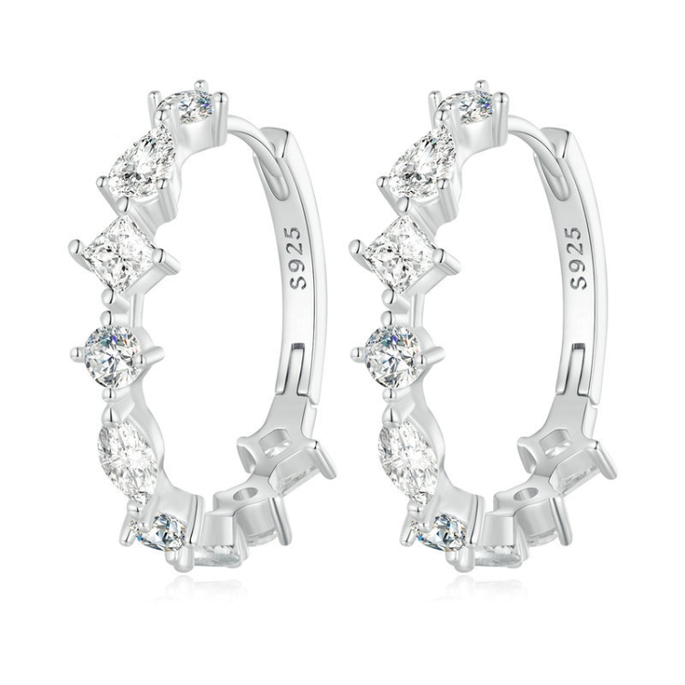 Sterling Silver S925 Platinum-plated Zircon Sparkling Earrings