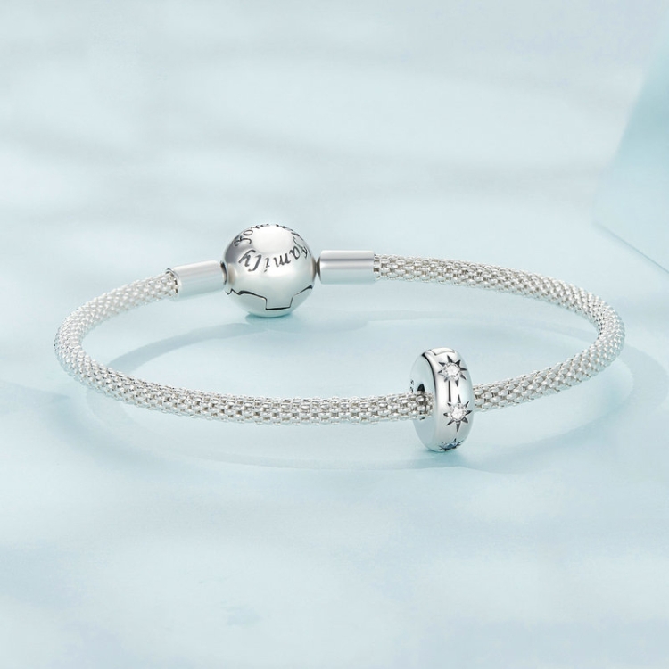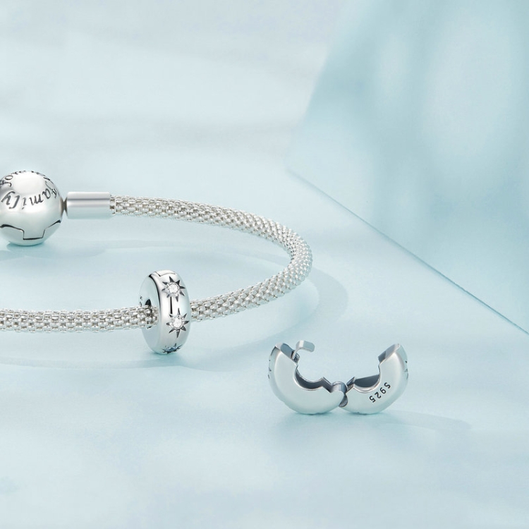 Sterling Silver S925 Pointed Star Round Positioning Clip Zircon Star Bracelet Beads