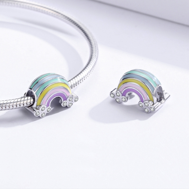 Sterling Silver S925 Rainbow Beaded Colored Oil DIY Jewelry Accessories