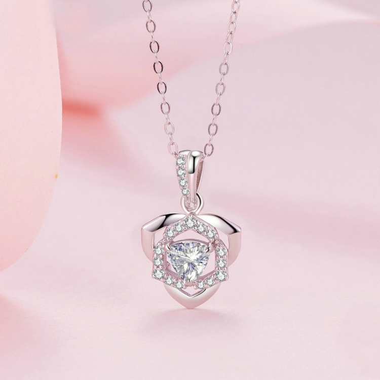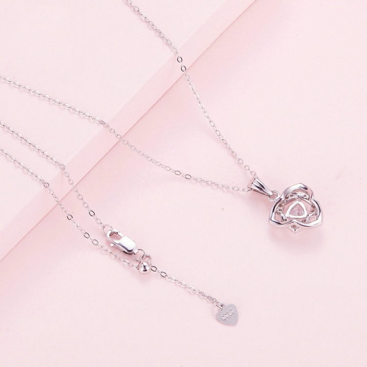 Sterling Silver S925 Rose Heart Pendant White Gold Plated Zircon Necklace