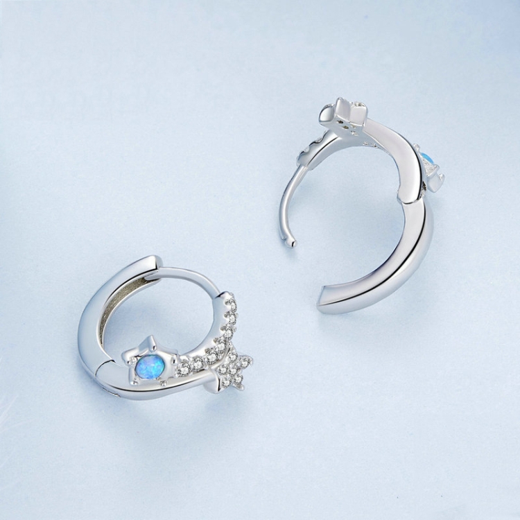 Sterling Silver S925 Shooting Star Earrings Pentagram Ear Zirconia Dreamy Sweet Earrings