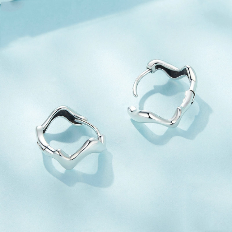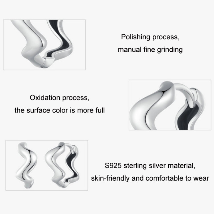 Sterling Silver S925 Simple Wave Ladies Earrings