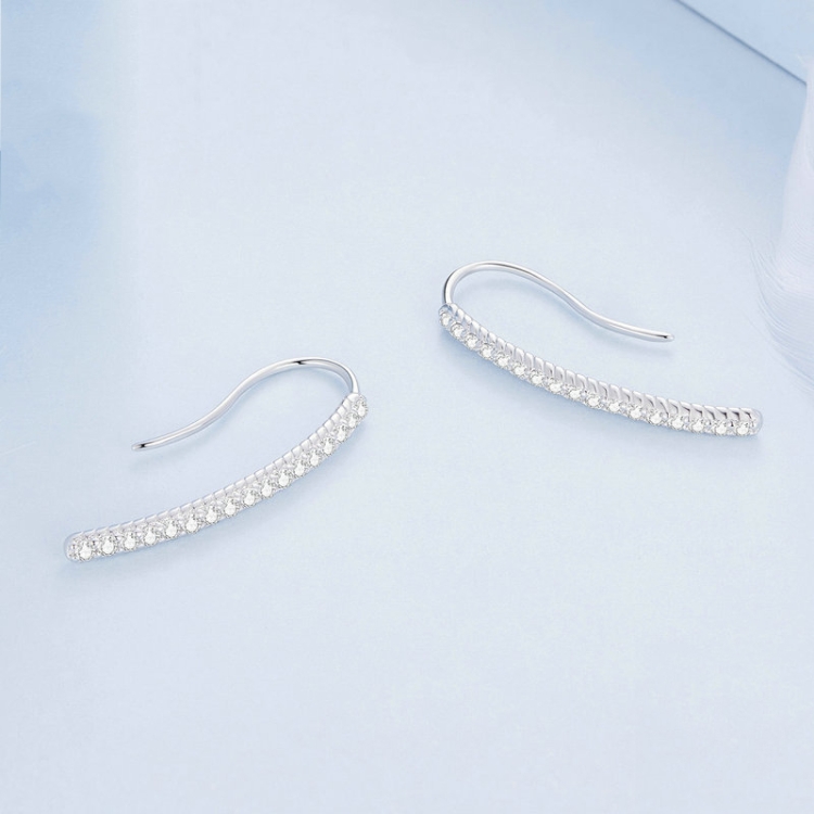 Sterling Silver S925 Simple White Gold Plated Zirconia Ear Hooks