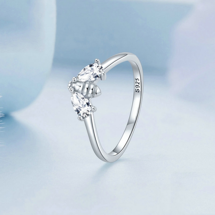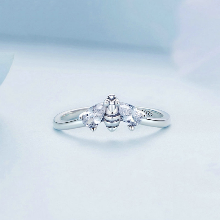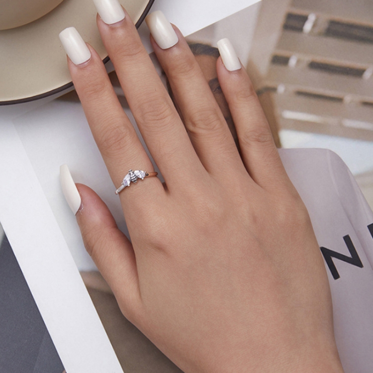 Sterling Silver S925 Small Bee Cute Insect Zirconia Ring