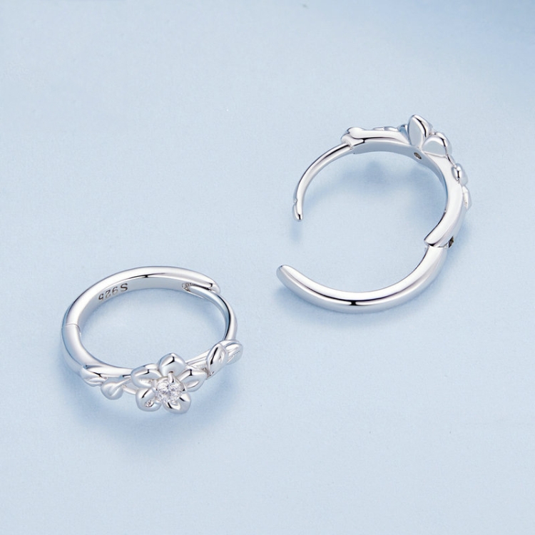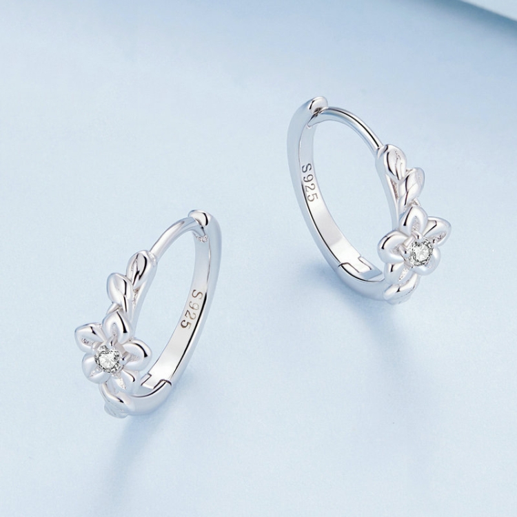 Sterling Silver S925 Small Flower Vine Plated Platinum Zircon Earrings