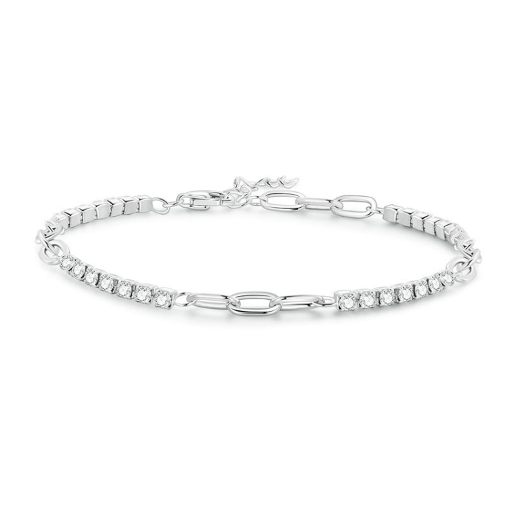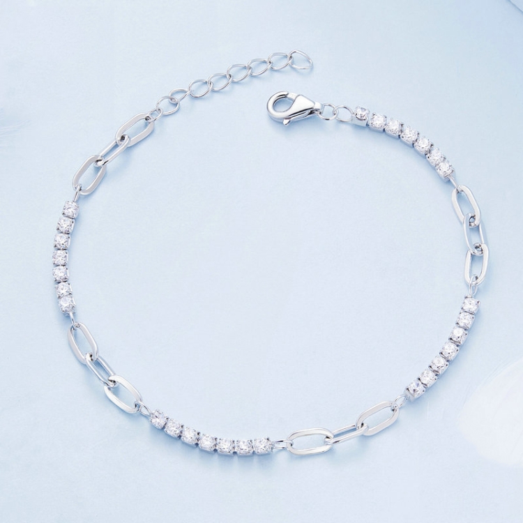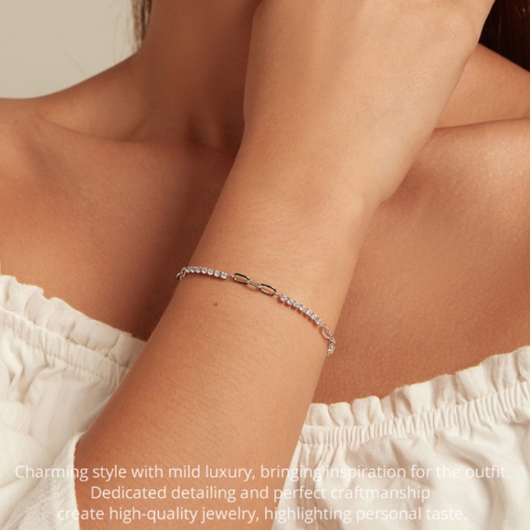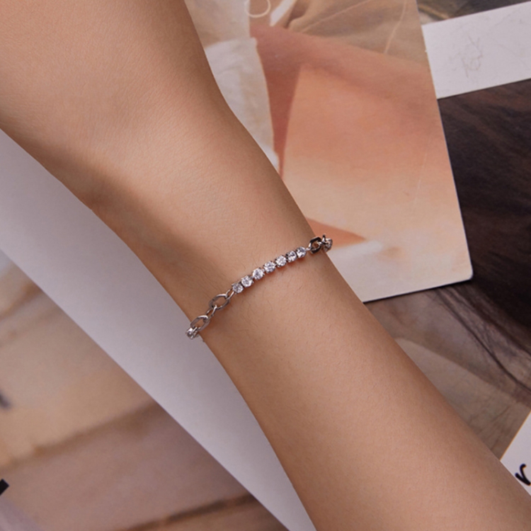 Sterling Silver S925 Sparkling Mosaic White Gold Plated Square Zircon Bracelet