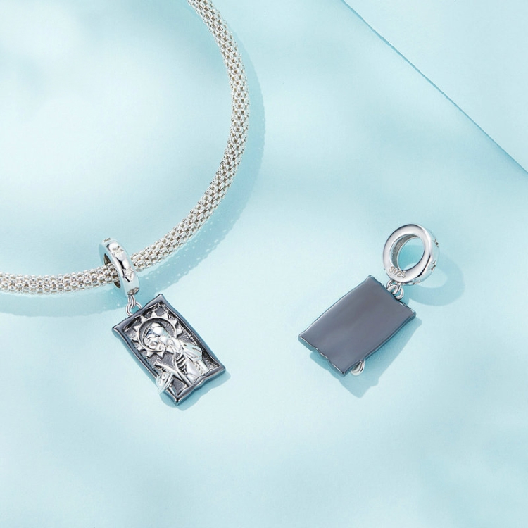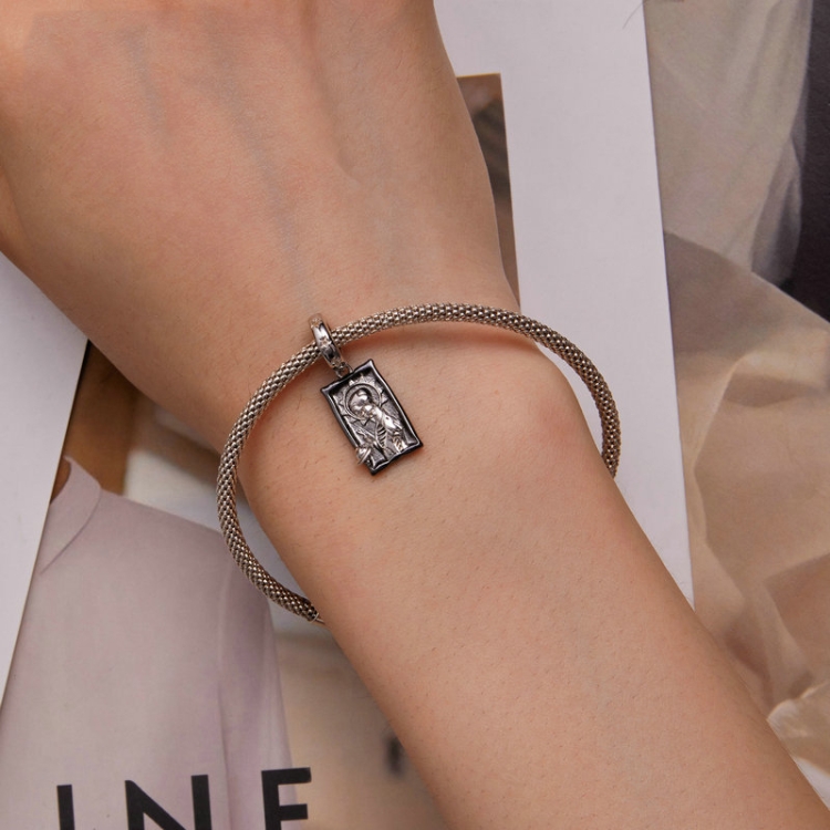 Sterling Silver S925 Tarot Card Pendant Bracelet Black Gold Plated Retro Pendant