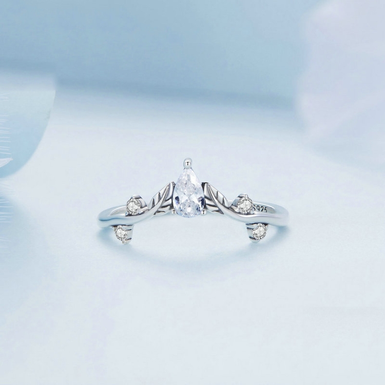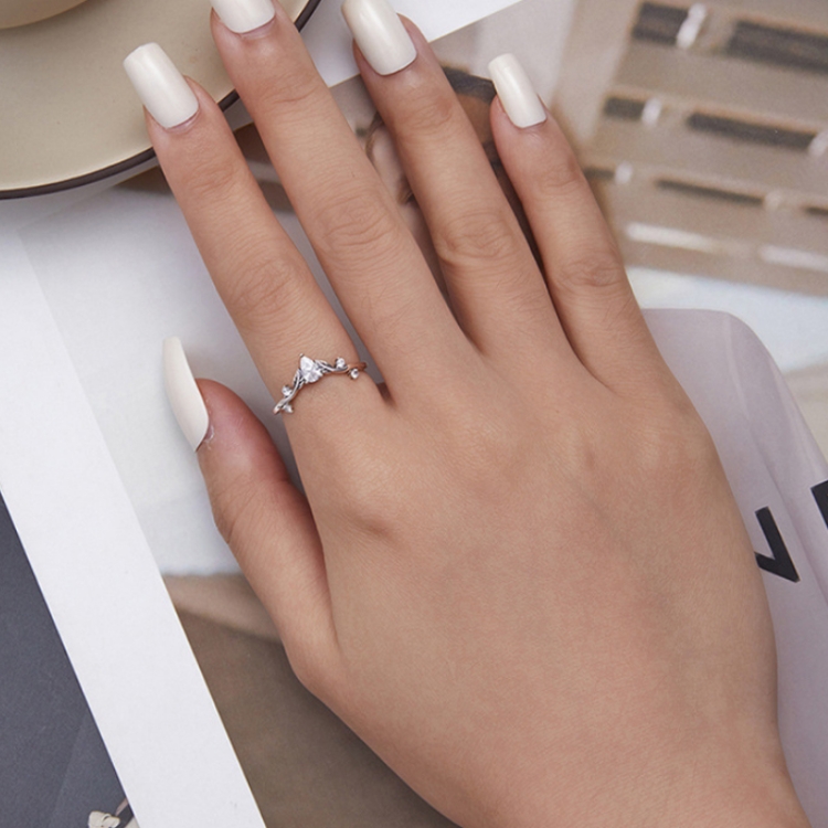 Sterling Silver S925 Teardrop Vine Ring Zirconia Branch Leaf Jewellery