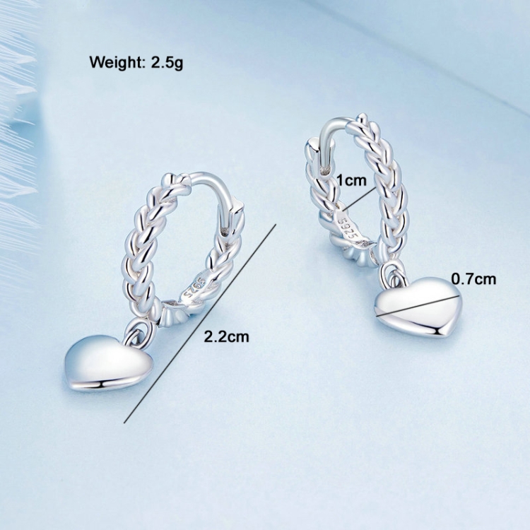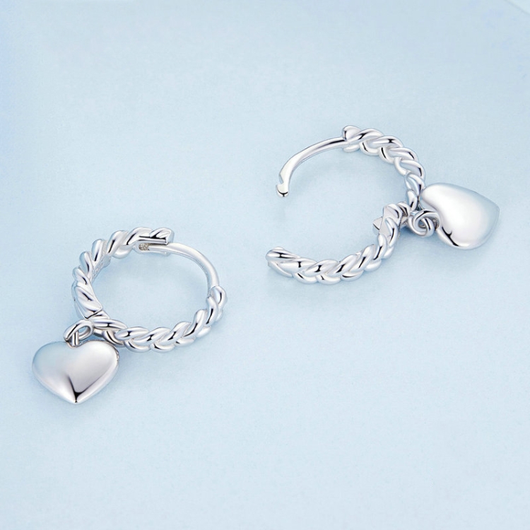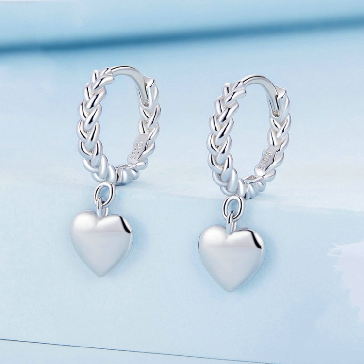Sterling Silver S925 Twist Heart White Gold Plated Earrings