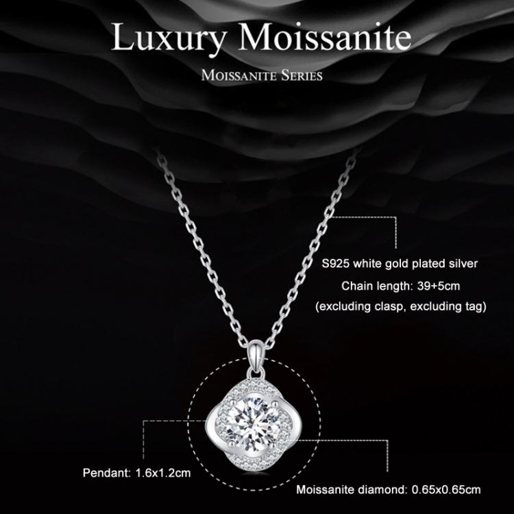 Sterling Silver S925 White Gold Plated Sparkling Moissanite Pendant Necklace