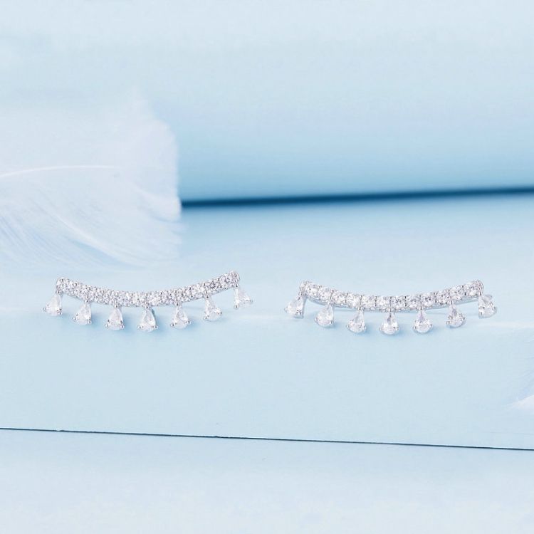 Sterling Silver S925 White Gold Plated Sparkling Zirconia Earrings
