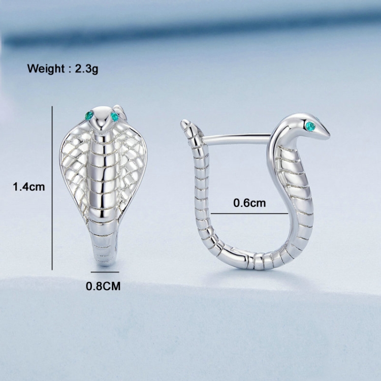 Sterling Silver S925 White Gold Plated Zirconia Cobra Earrings