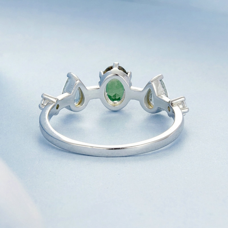 Sterling Silver S925 Zircon White Gold Plated Gradient Glass Tourmaline Ring