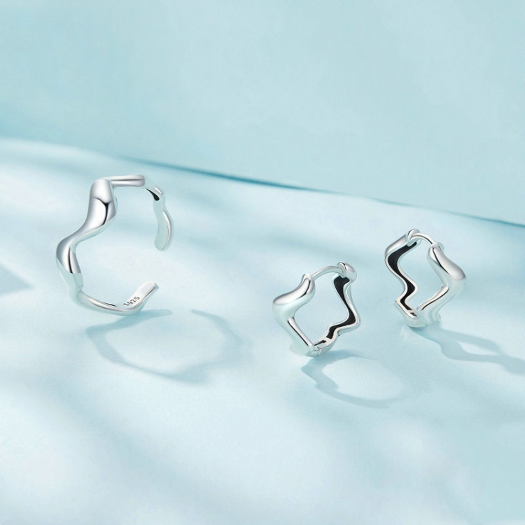 Sterling Silver Simple Wavy Earrings Ring Set