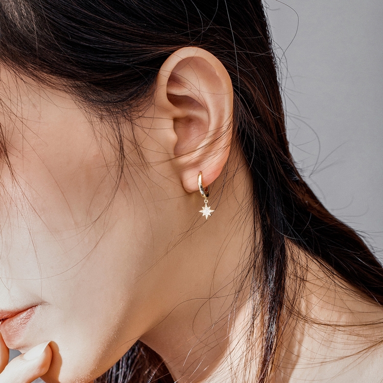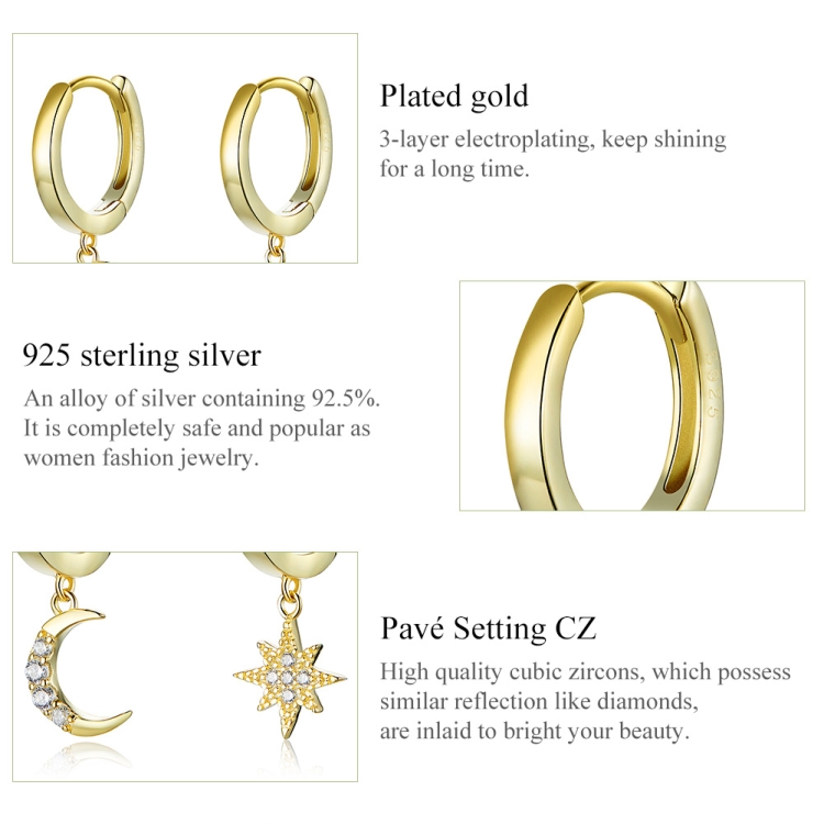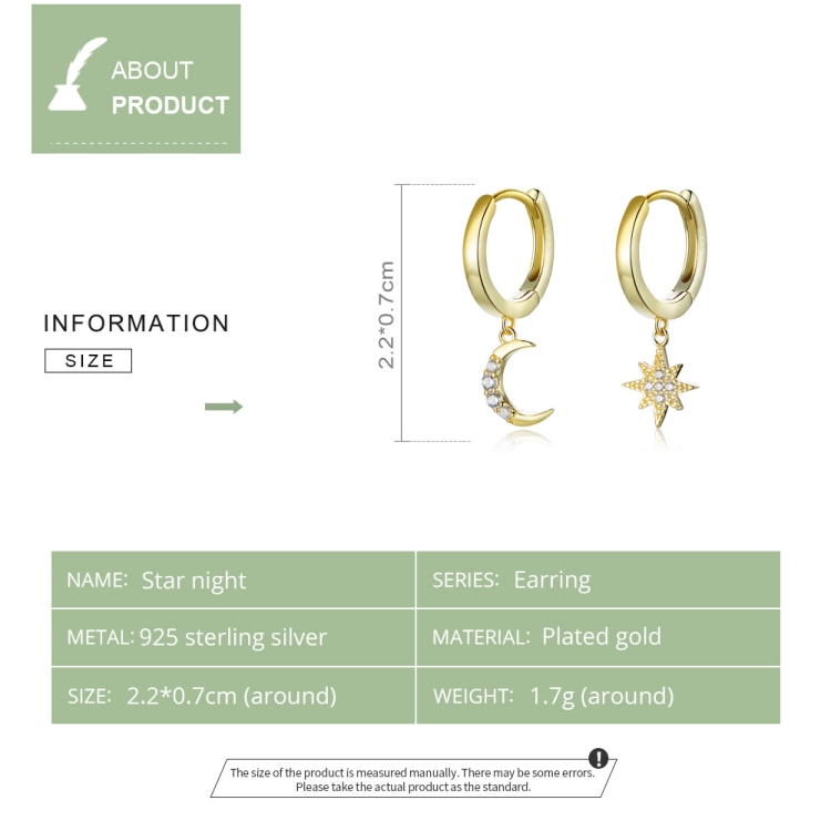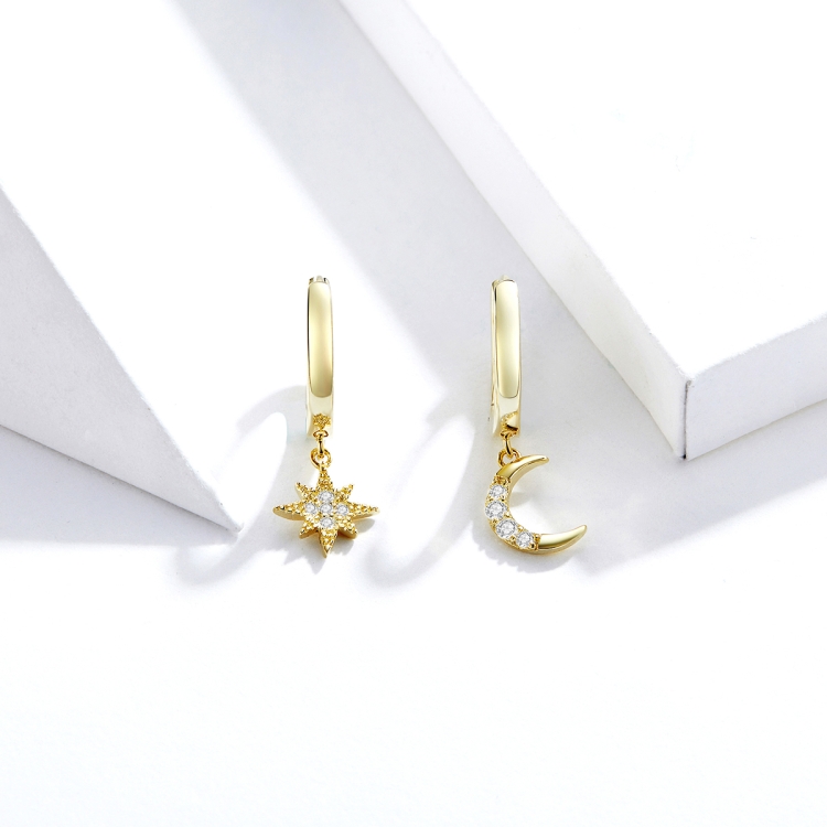 Sterling Silver Star Moon Earrings S925 Zircon Earrings