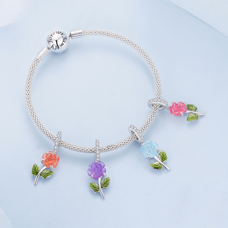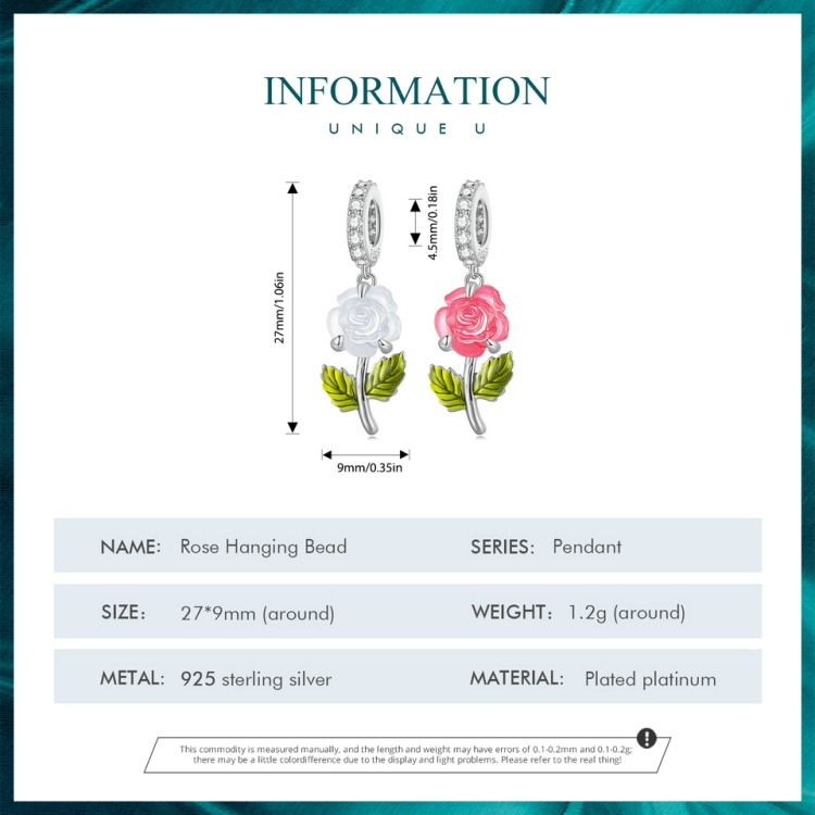 Sterling Silver Zircon Rose UV Color Changing Bead Accessory