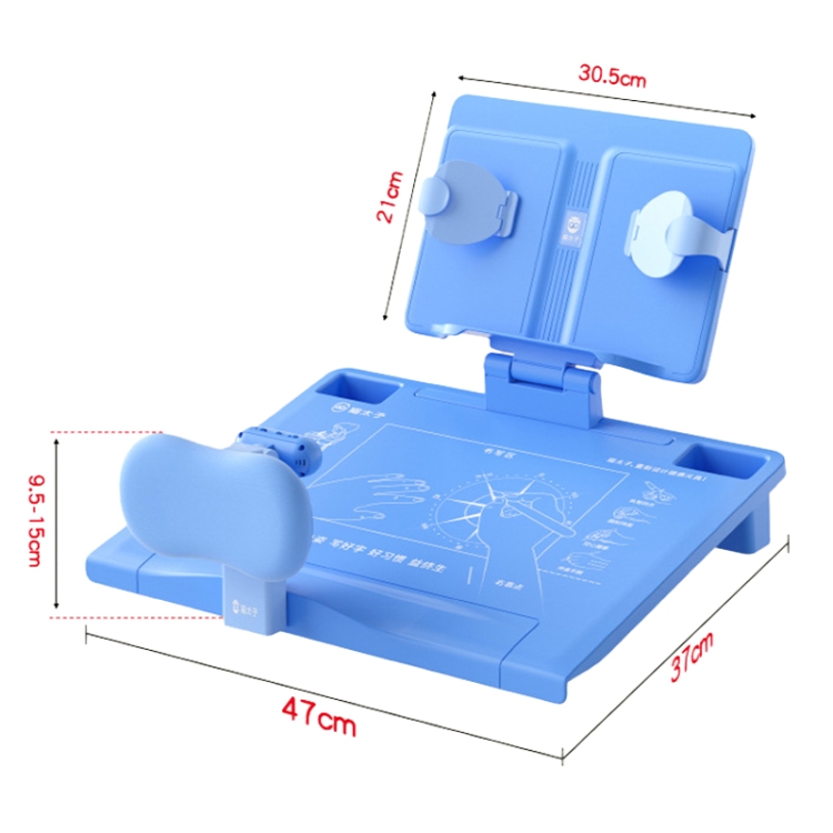 9. Size: reading rack about 30.5 x 21cm, writing board about 47 x 37cm, sitting corrector adjustable height about 9.5-15cm