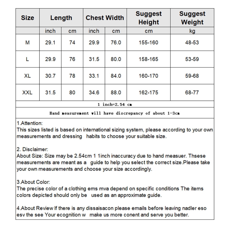 7. Size: M, L, XL, XXL