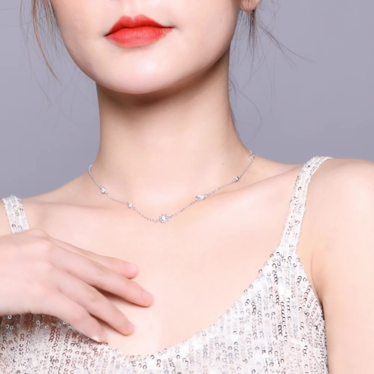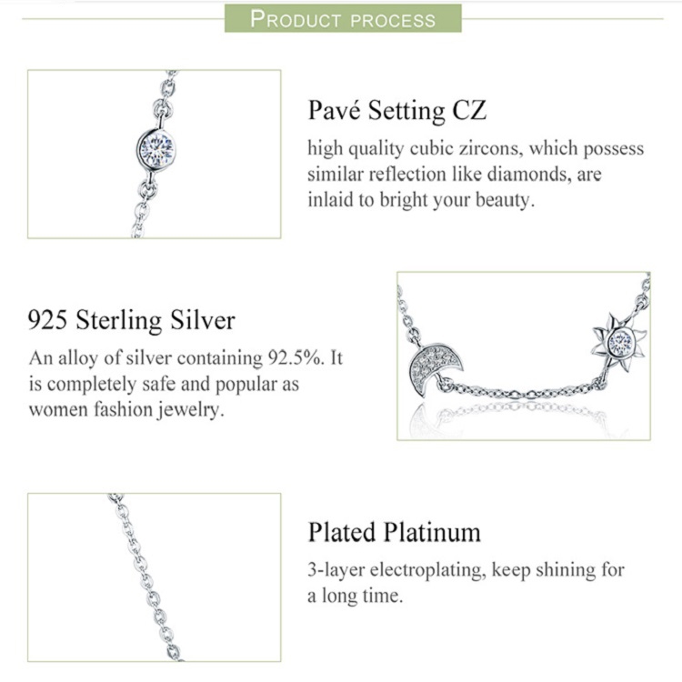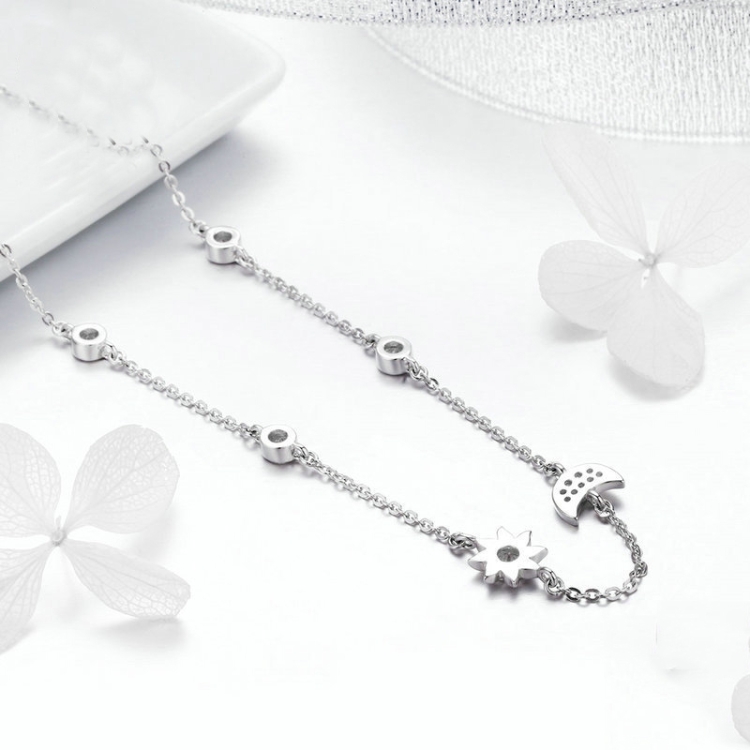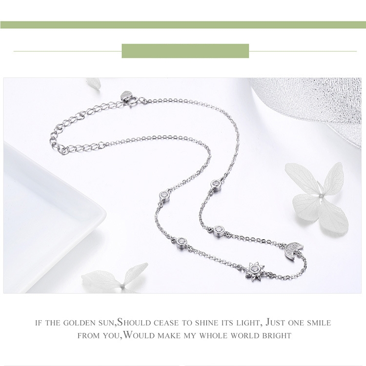 Sun Moon Shining S925 Sterling Silver Necklace Rose Gold Plated Zircon Necklace