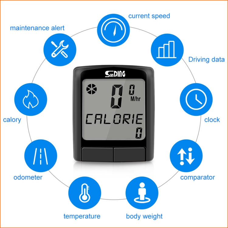 SUNDING SD-565B Wireless Waterproof Bicycle Computer Bike Speedometer MTB Cycling LCD Digital Display Odometer Stopwatch