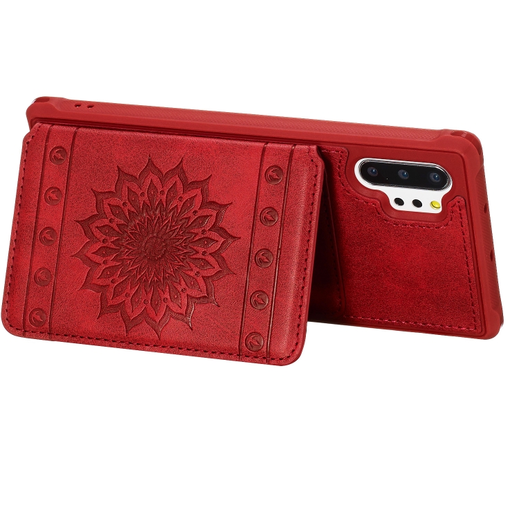 Sunflower Embossing Pattern PU + TPU Case with Holder & Card Slots & Photo Frame & Lanyard