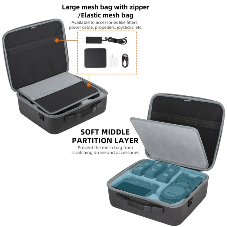 4. Visible large-capacity zipper mesh bag, which can store accessories such as adapter cables, propellers, rockers, etc.