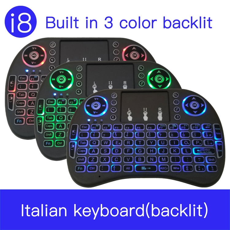 Support Language: Italy i8 Air Mouse Wireless Backlight Keyboard with Touchpad for Android TV Box & Smart TV & PC Tablet & Xbox360 & PS3 & HTPC/IPTV