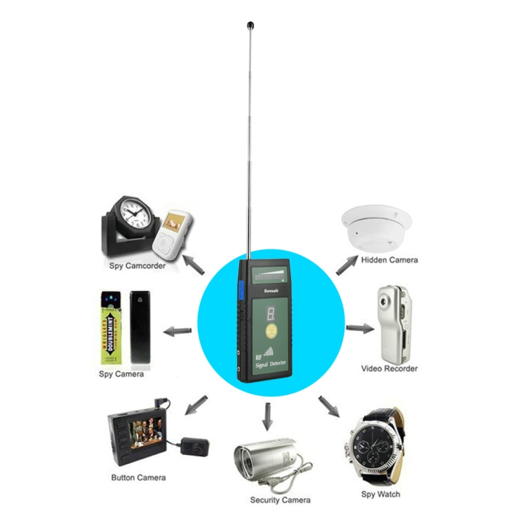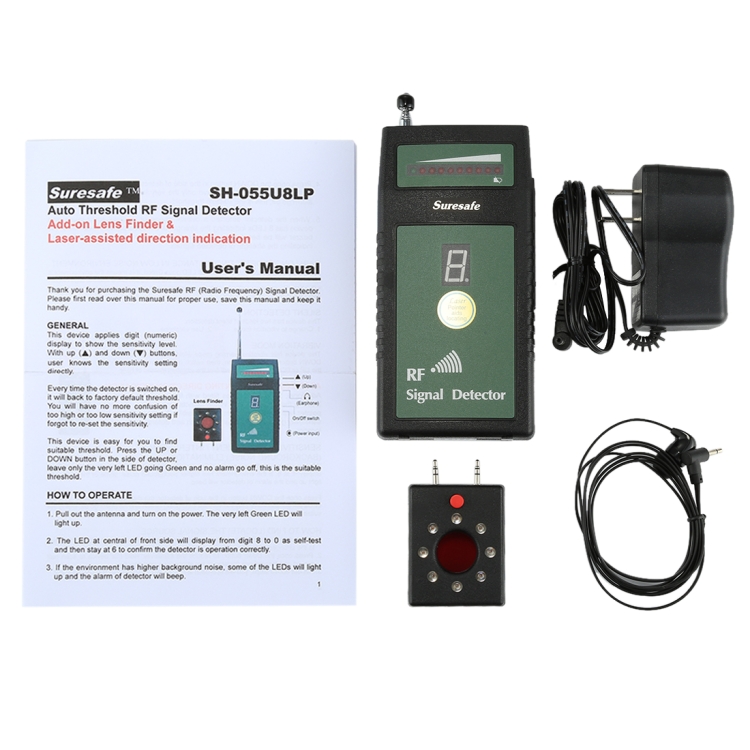 Suresafe SH-055U8LP Auto Threshold RF Signal Detector Camera Detector with 8 LEDs, Detection Frequency: 50 MHz-6.0 GHz, US/EU/UK Plug, AC 100-240V