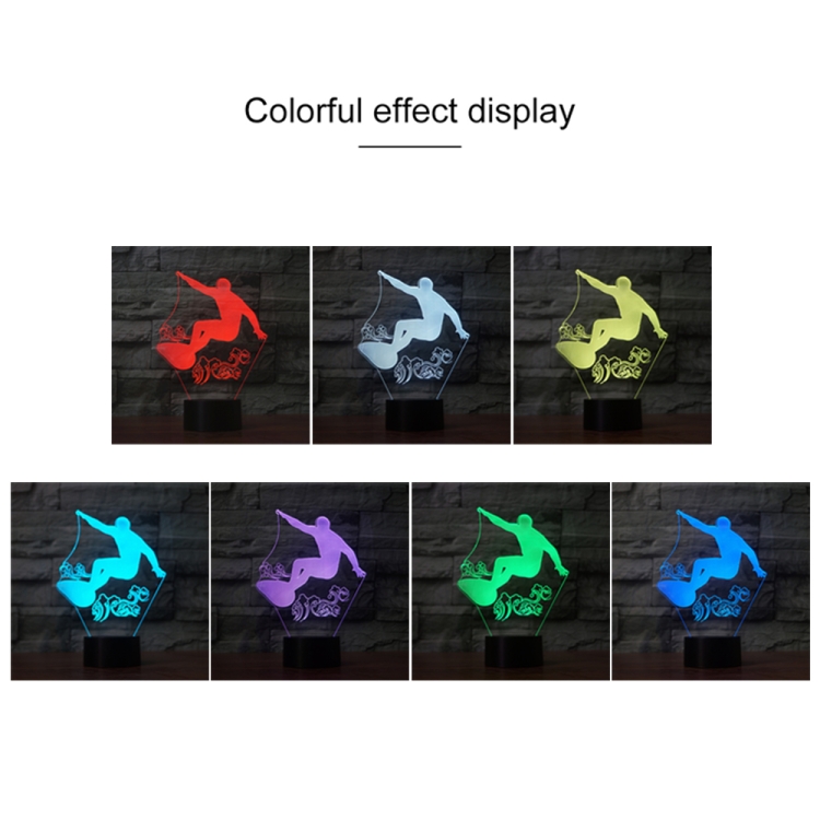 Surf Riding Shape 3D Colorful LED Vision Light Table Lamp, 16 Colors Remote Control Version