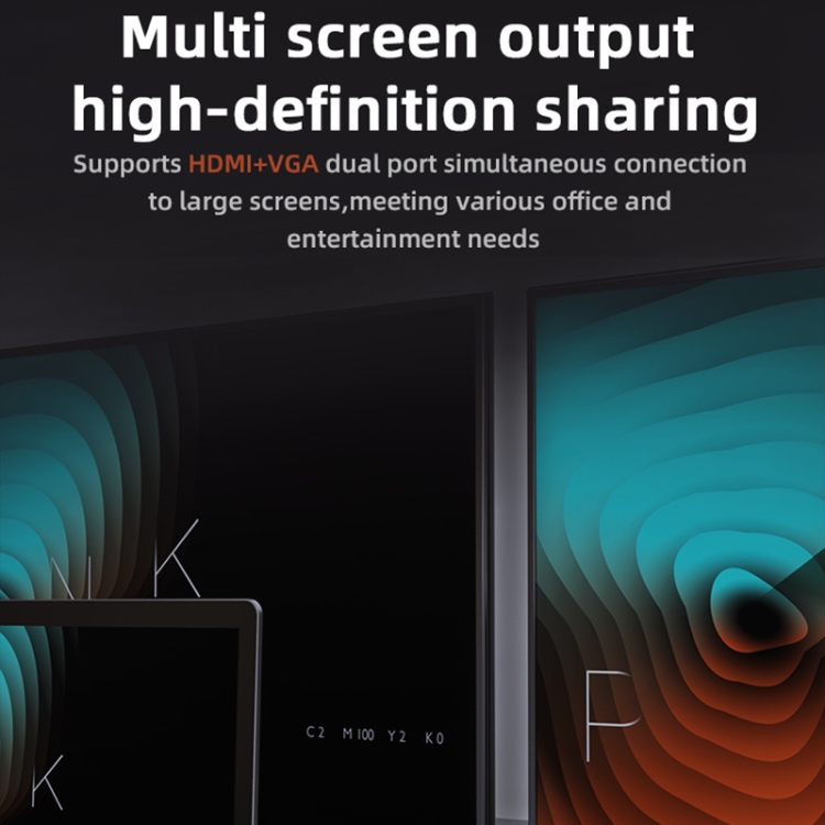 Output interface: HDMI: 4K 30Hz, VGA: 1080P 60Hz, PD3.0: 100W+Data 2-in-1, USB3.0: 5Gbps, USB2.0: 480Mbp, 3.5mm audio: output+input