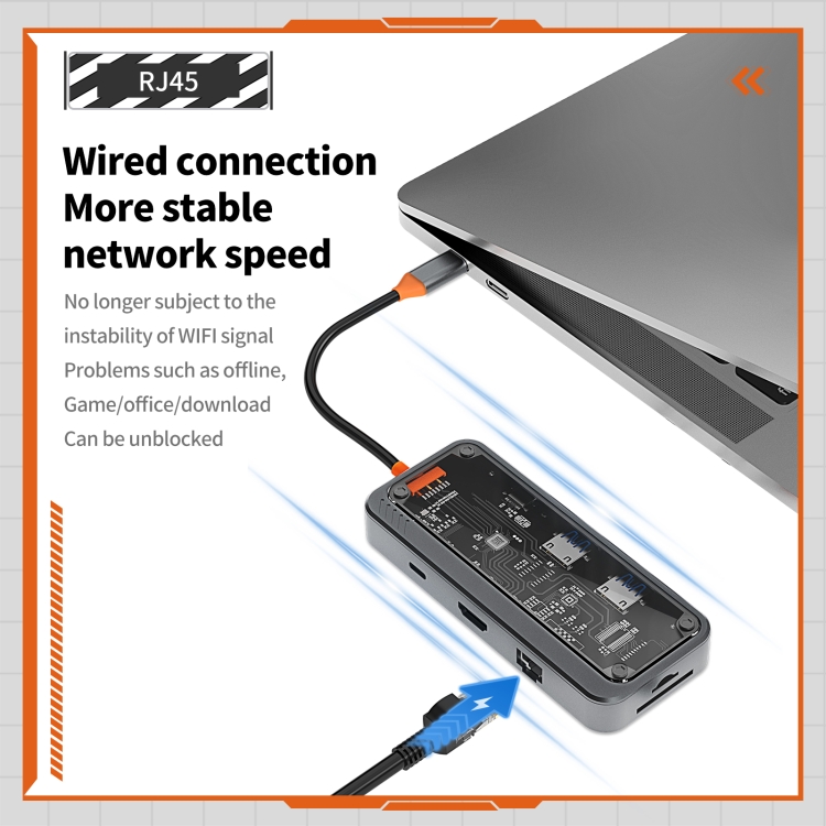 SW8V 8 in 1 Type-C to USB + HDMI + RJ45 + SD/TF HUB Docking Station