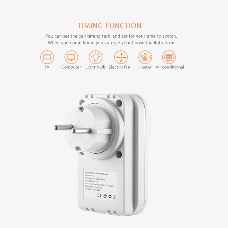 SWA1 10A Home Automation Wireless Smart WiFi Socket, Support Smartphone Remote Control & Timing Switch & Alexa & Google Home