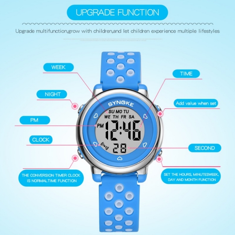 SYNOKE 9112 Waterproof Alarm Luminous Large Screen Colorful Children Digital Watch