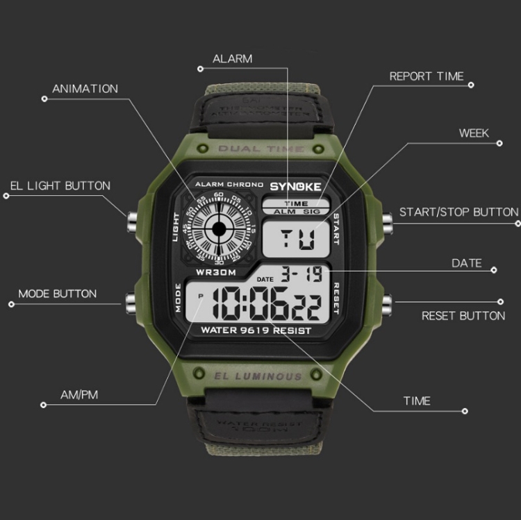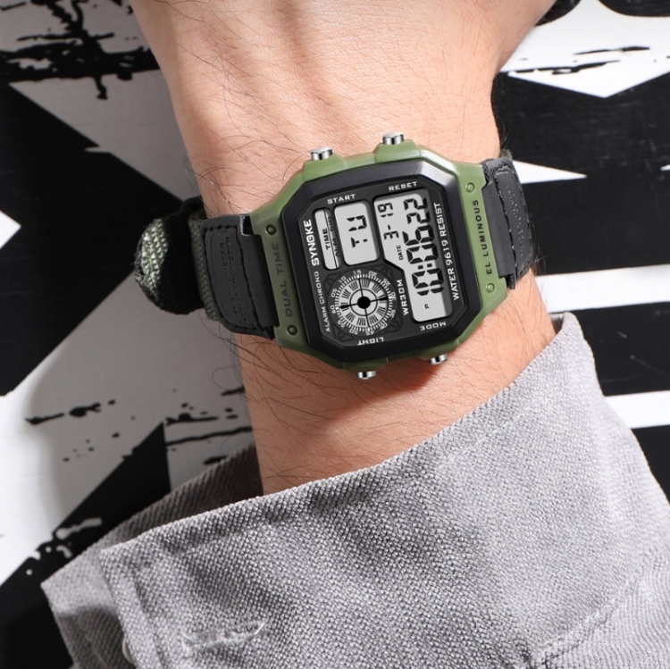 SYNOKE 9619B Nylon Canvas Strap Luminous Waterproof Digital Watch