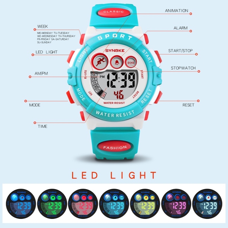 7. Special functions: week display, month display, luminous, alarm, hourly hour, running seconds, 12/24 hour format