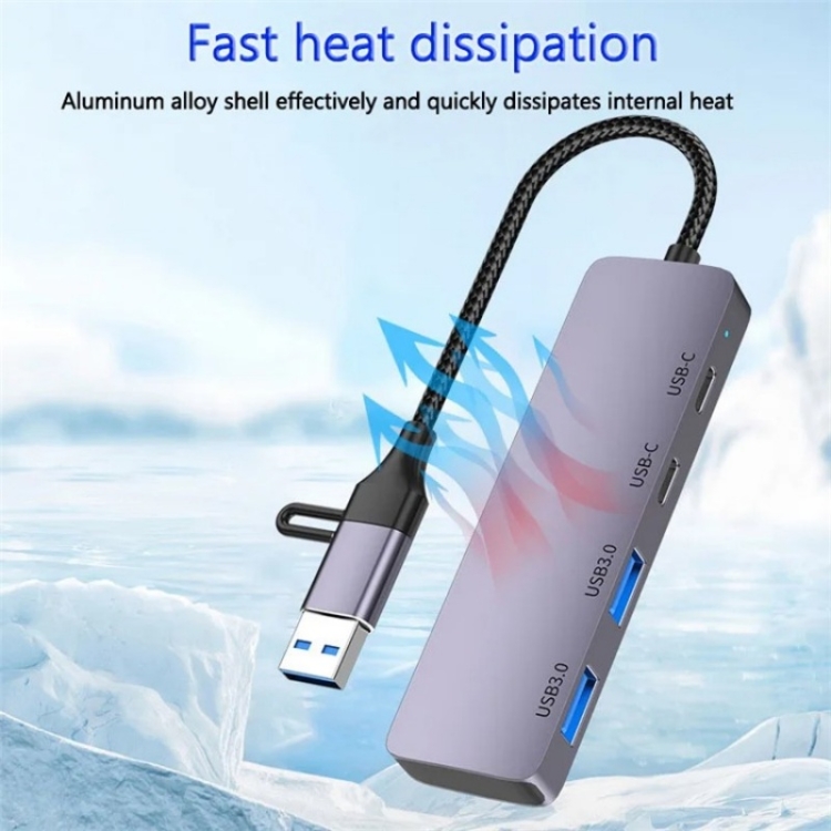 T-32C 2-in-1 Cable USB 3.0 + Type-C 4-port Hub Aluminum Alloy Docking Station