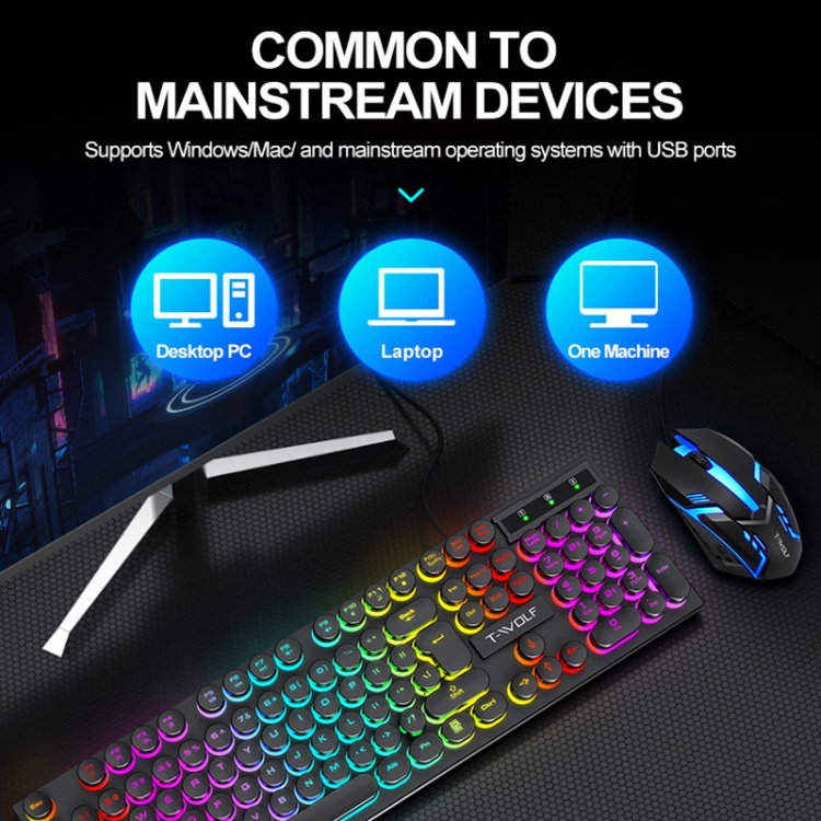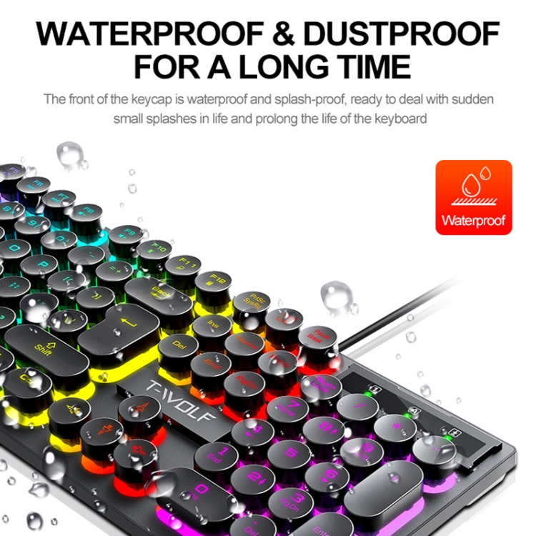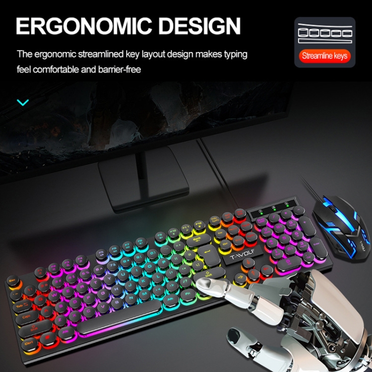 T-WOLF TF270 Colorful Light Effect Retro Gaming Wired Keyboard And Mouse Set
