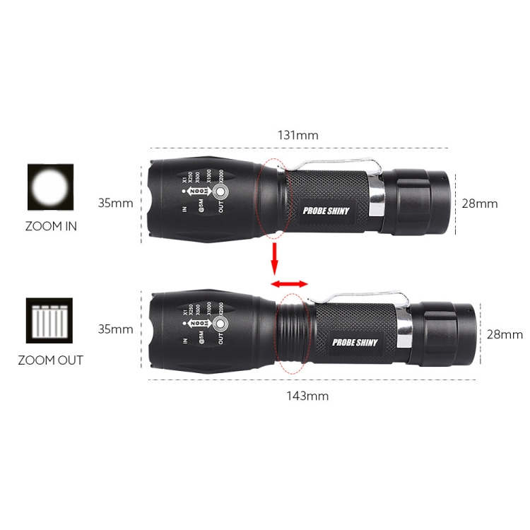 T02 Pen Clip Mini Flashlight T6 Telescopic Zoom Led Flashlight Outdoor Waterproof Long Shot Glare Flashlight