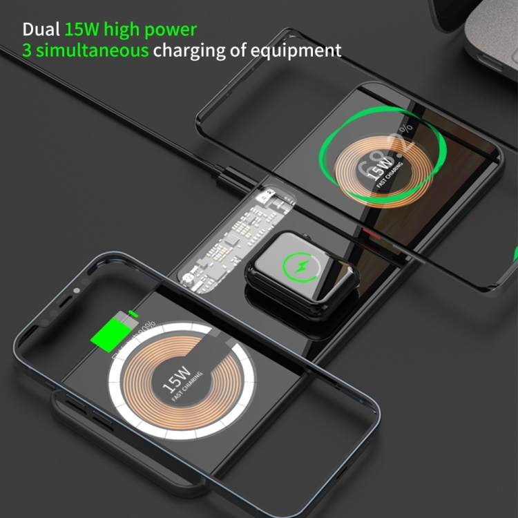 T06 Dual 15W Fast Charging Pad 3 in 1 Transparent Magnetic Phone Wireless Charger