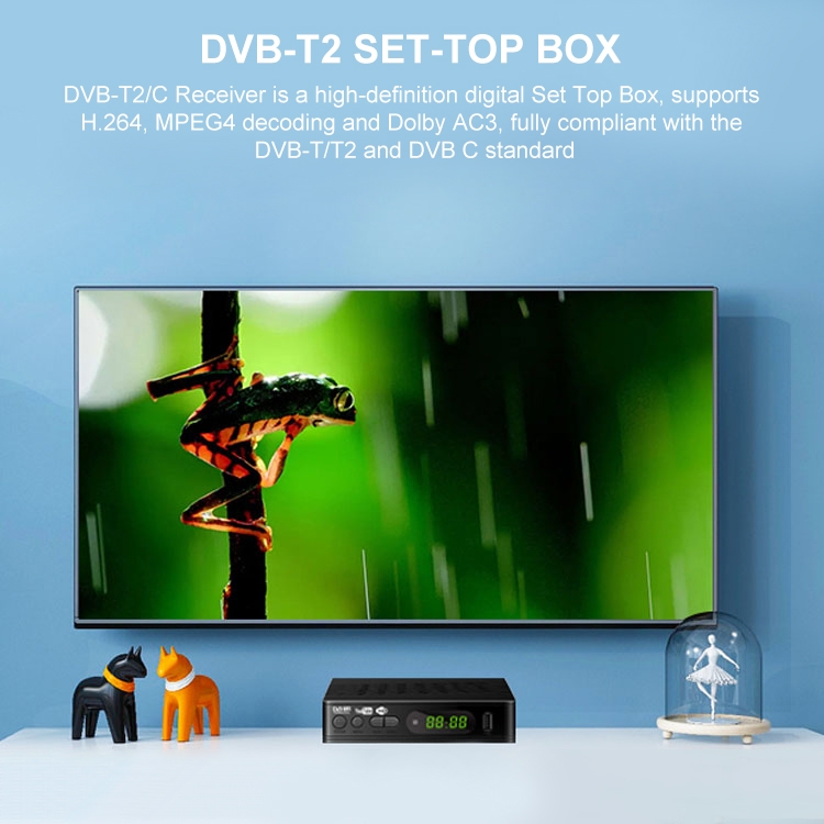 1. DVB-T2/C receiver is a HD digital set-top box, support H.264 MPEG4 decoding and dolby AC3, fully compliant with the DVB-T/T2 and DVB C standard