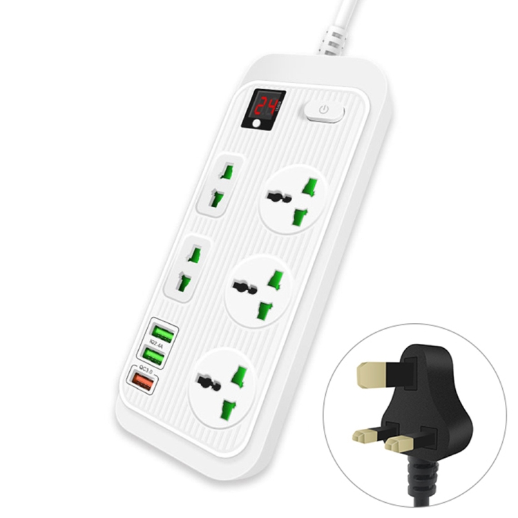 T17 3000W High-power 24-hour Amart Timing Socket QC3.0 USB Fast Charging Power Strip Cable Length 2m, UK Plug