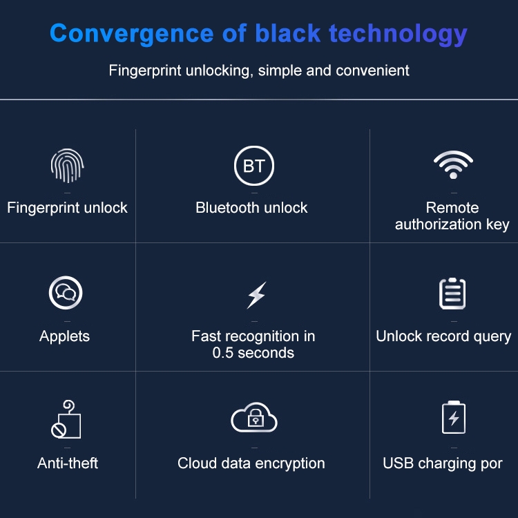 1. Support three unlocking methods of fingerprint + Bluetooth APP + WeChat applet