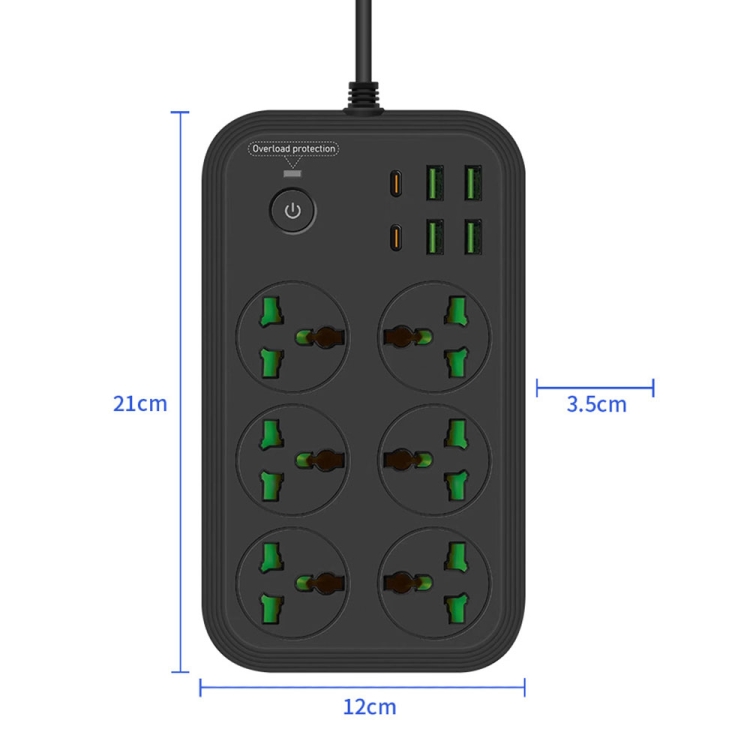 T24 2m 3000W 6 Plugs + PD + 4-USB Ports Multifunctional Flame-Retardant Socket With Switch