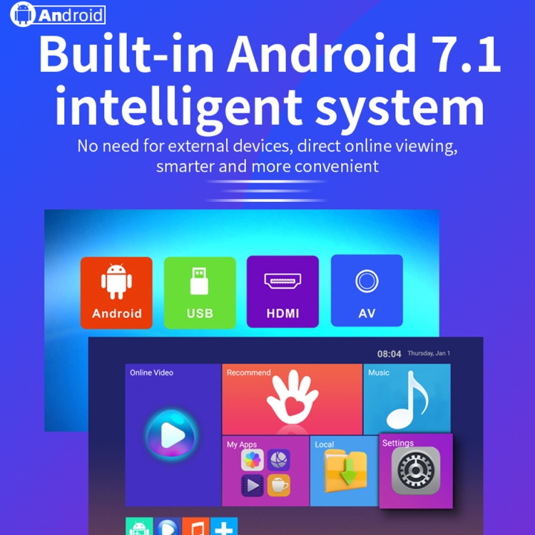 T500 1920×1080 3000LM Mini LED Projector Home Theater, Support HDMI & AV & VGA & USB & TF, Android Version