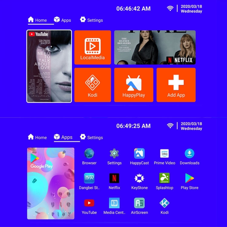 T6 2000ANSI Lumens Mini Theater Projector, Android 7.1 RK3128 Quad Core, 1GB+8GB, AU Plug