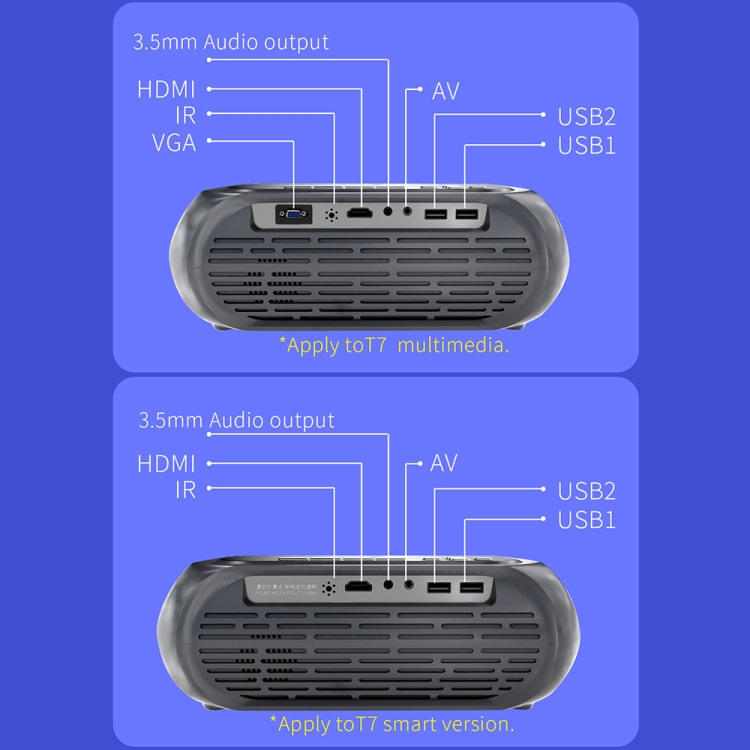 T7 1920x1080P 200 ANSI Portable Home Theater LED HD Digital Projector, Same Screen Version,