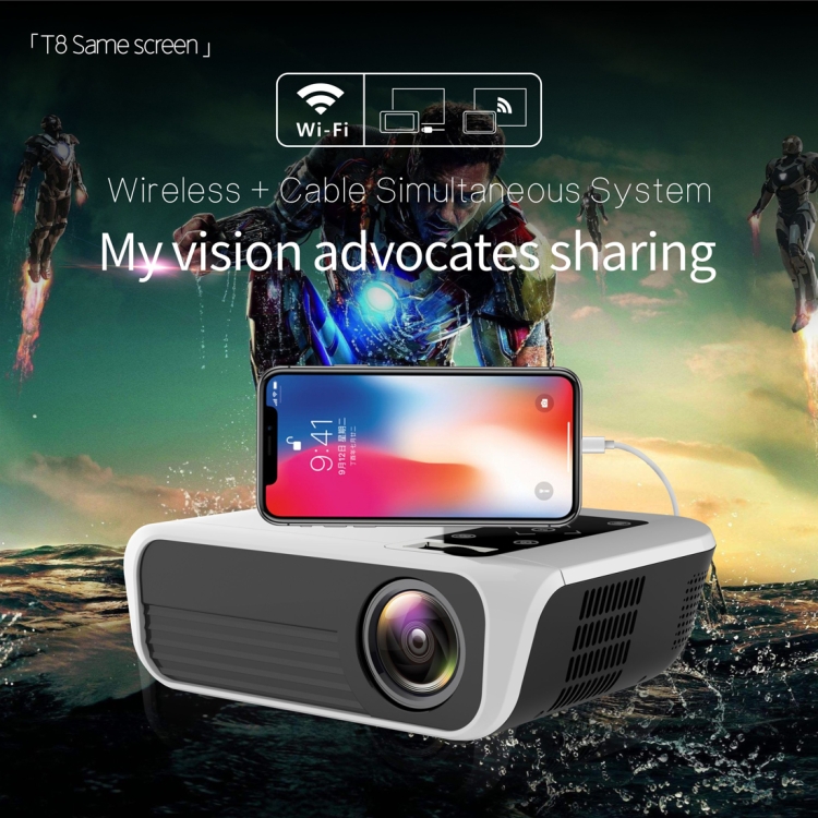 T8 1920×1080 Portable Home Theater Office Full HD Mini LED Projector with Remote Control, Built-in Speaker, Support USB / HDMI / AV / IR, Same Screen Version