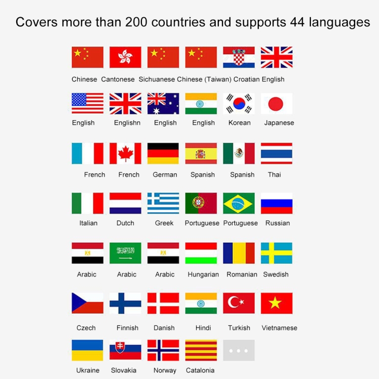1. 33 different languages instantly inter-translate: English, Chinese, Korean, Japanese, Thai, French,German, Spanish, Italian, Dutch, Greek, Portuguese, Russian, Arabic, Swedish, Czech, Finnish, Danish, Polish, Hungarian, Romanian